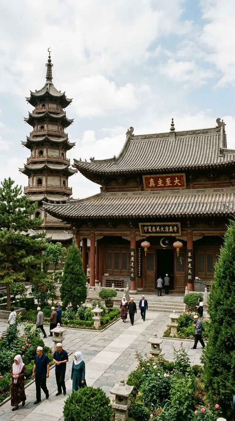 The Chinese mosque adapts Islamic architecture to Chinese building traditions. The mosque looks like a Buddhist temple from the outside: wooden columns, curved roofs, and courtyard organisation. The interior contains Islamic calligraphy and avoids figurative decoration.