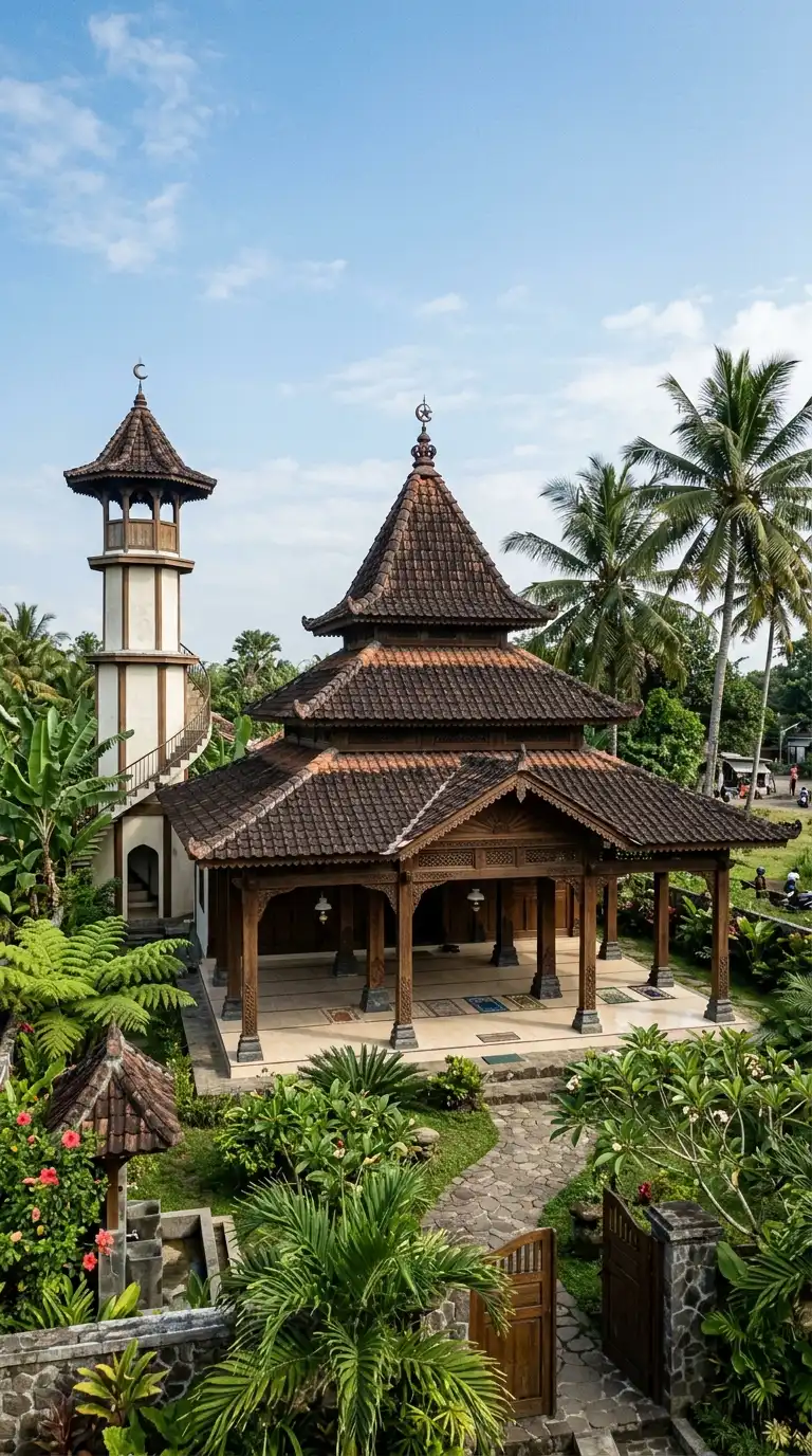 The Demak Great Mosque (15th century) is the defining example. The emotional effect is tropical, layered, and culturally hybrid.