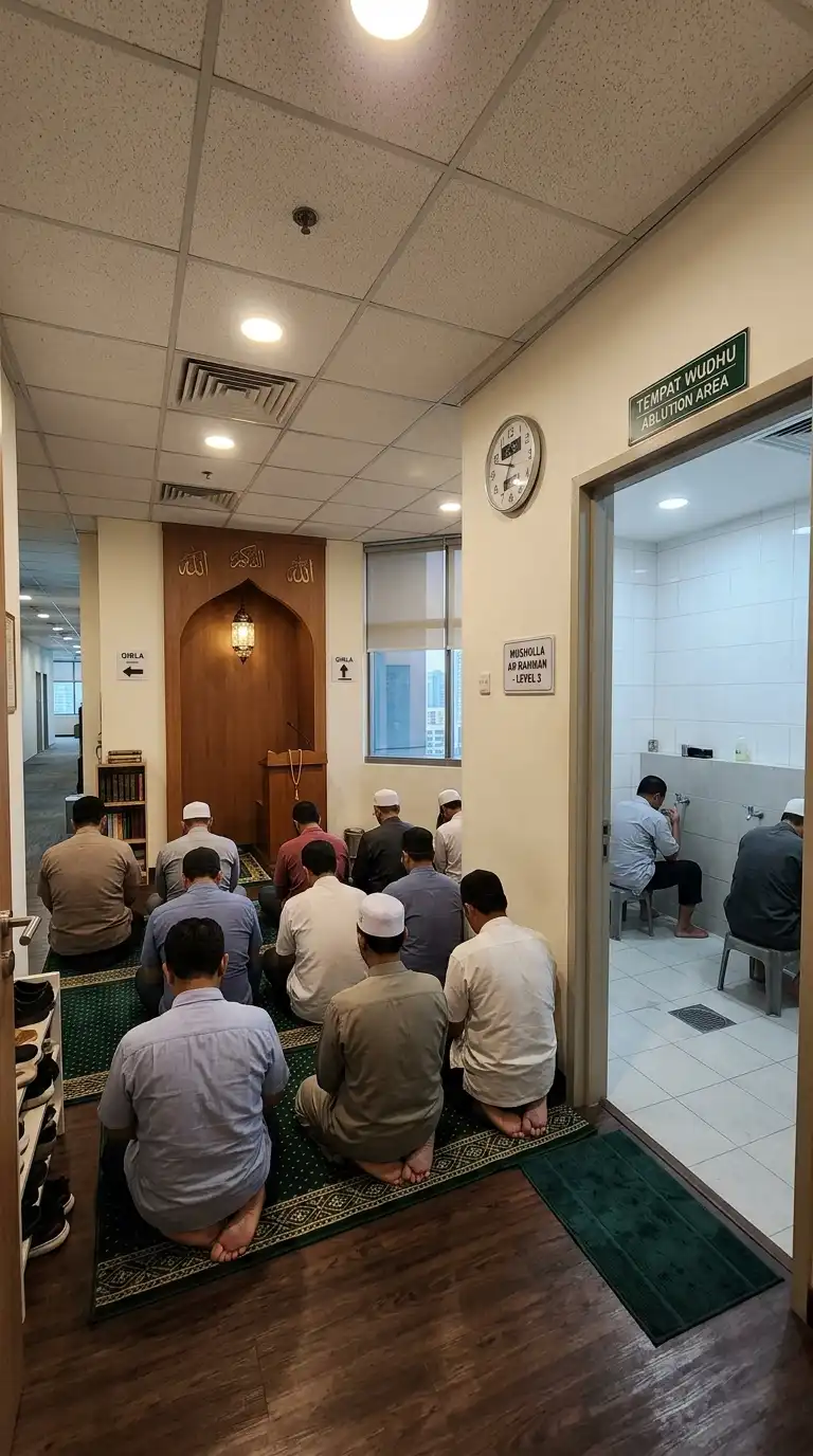 The musholla is a small prayer space, often attached to a larger mosque or located in an airport, office, or shopping centre. Unlike a congregational mosque, the musholla does not host Friday prayers. It is for daily prayers only.