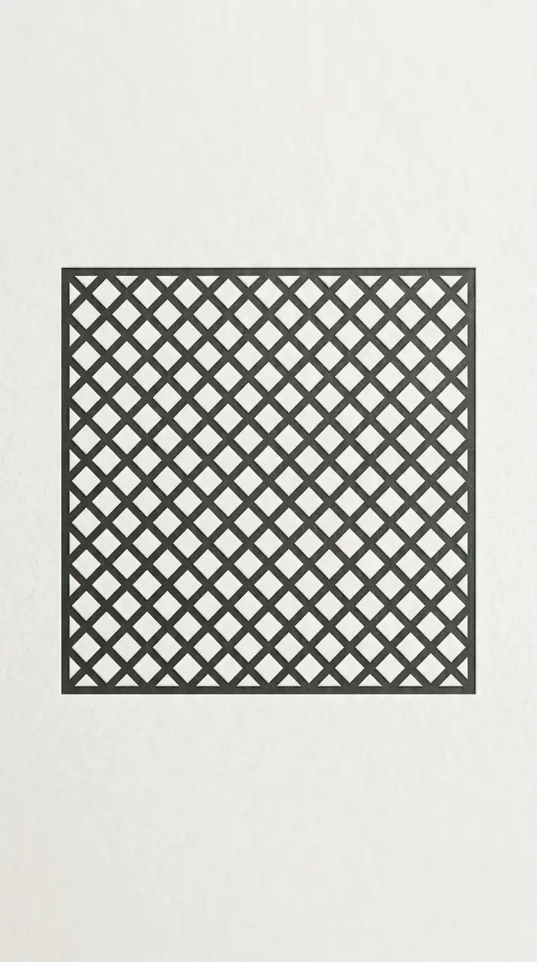 The lattice logo uses a diagonal grid or lattice pattern. The lattice suggests structure, screening, and light filtration. The lattice can be a complete grid or a fragment.