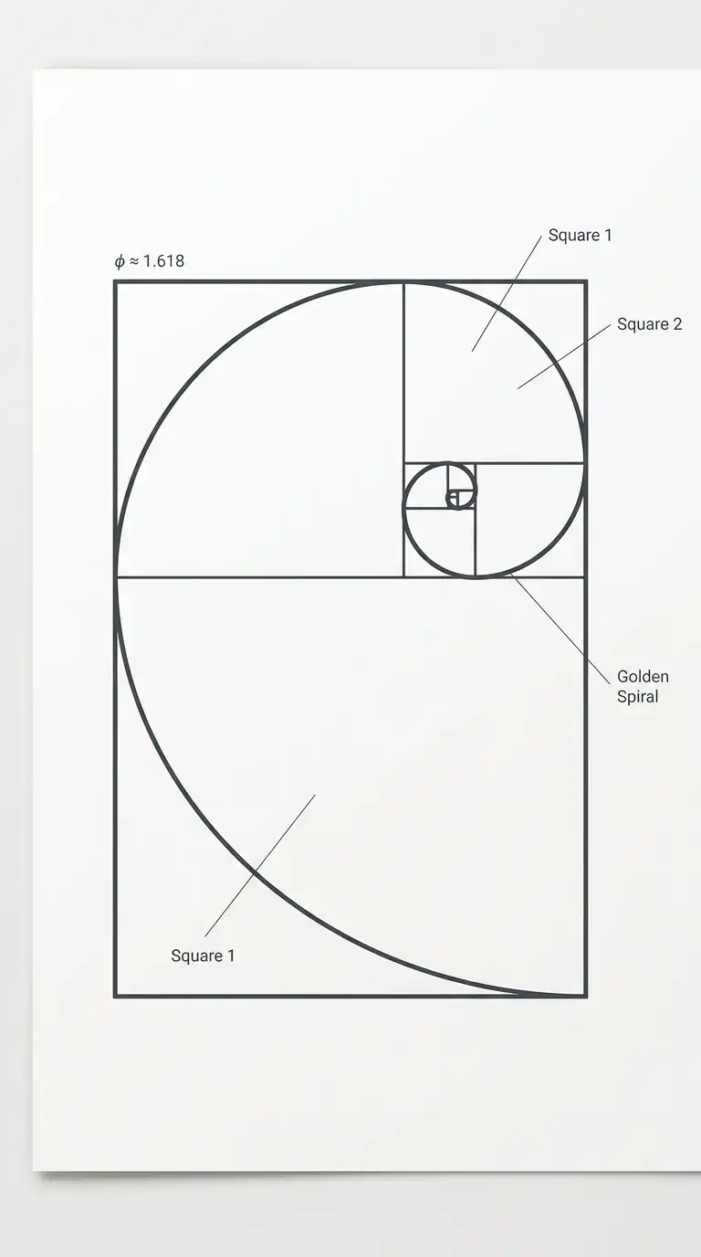 The golden rectangle logo uses the golden ratio (approximately 1:1.618) as the basis for the mark. A golden rectangle. A golden spiral. The logo suggests proportion, harmony, and classical ideals.