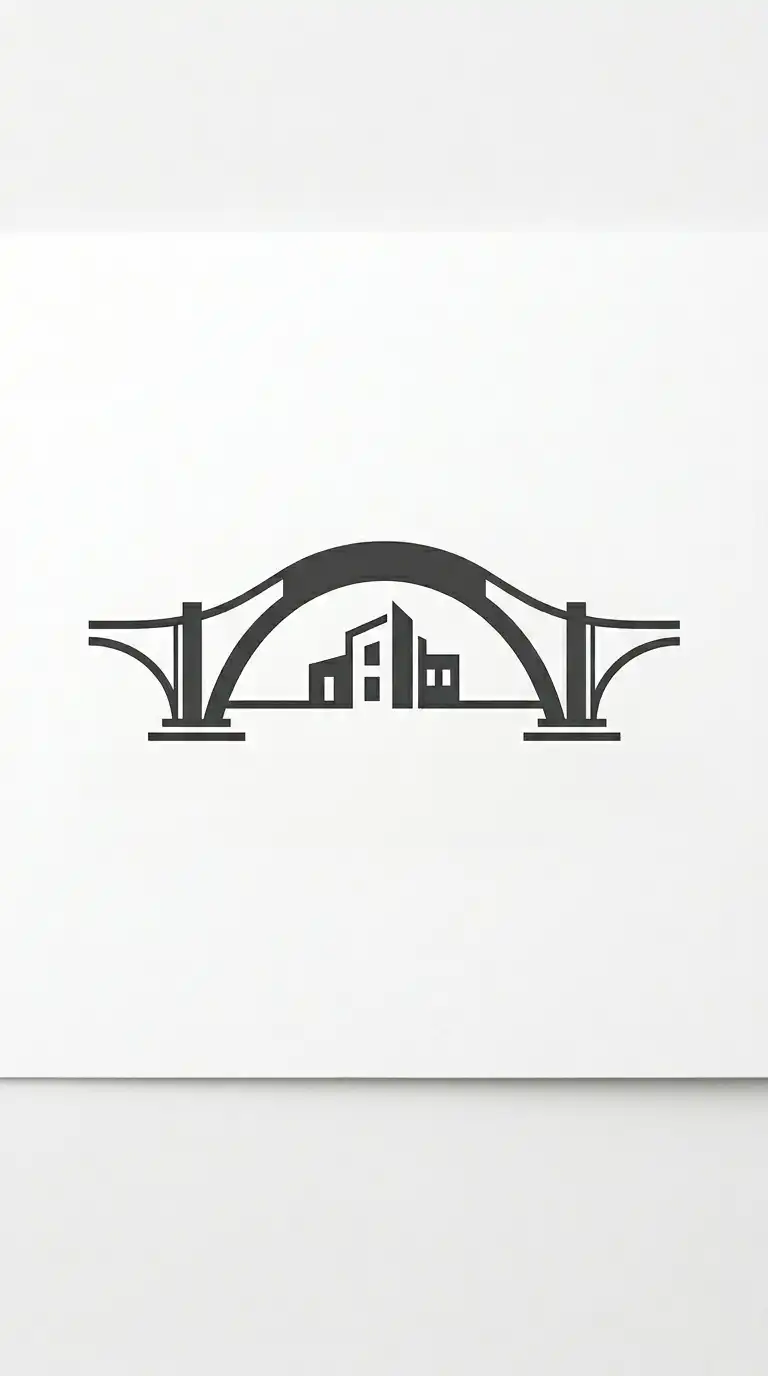 The bridge logo uses a bridge as the central metaphor. The bridge connects two sides — like the firm connects client needs to design solutions. The bridge can be a single arch, a truss, or a simple horizontal line.