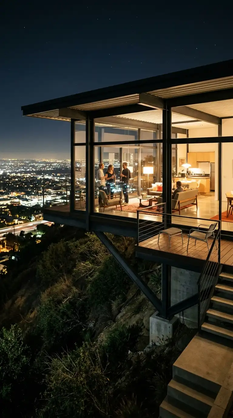 The Case Study House program (1945-1966) commissioned architects to design and build affordable, modern homes for post-war America. The most famous is Case Study House #22 by Pierre Koenig (1960) — a steel-framed glass box cantilevered over the Hollywood Hills.