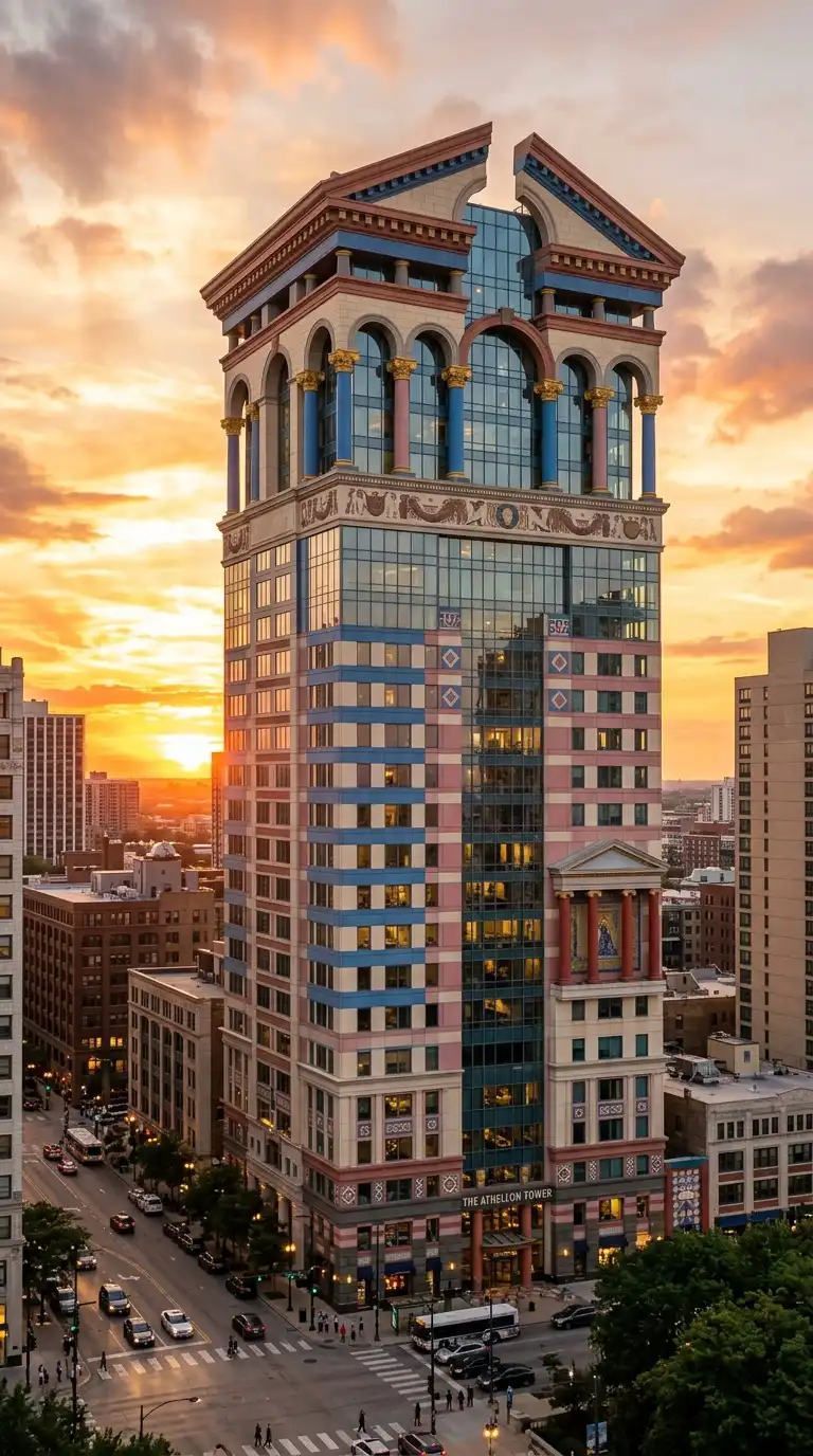 Postmodernism rejected modernism’s seriousness and prohibition of ornament. The Postmodern skyscraper is playful, ironic, and historical. It quotes classical forms — pediments, arches, columns — but out of context and often distorted.