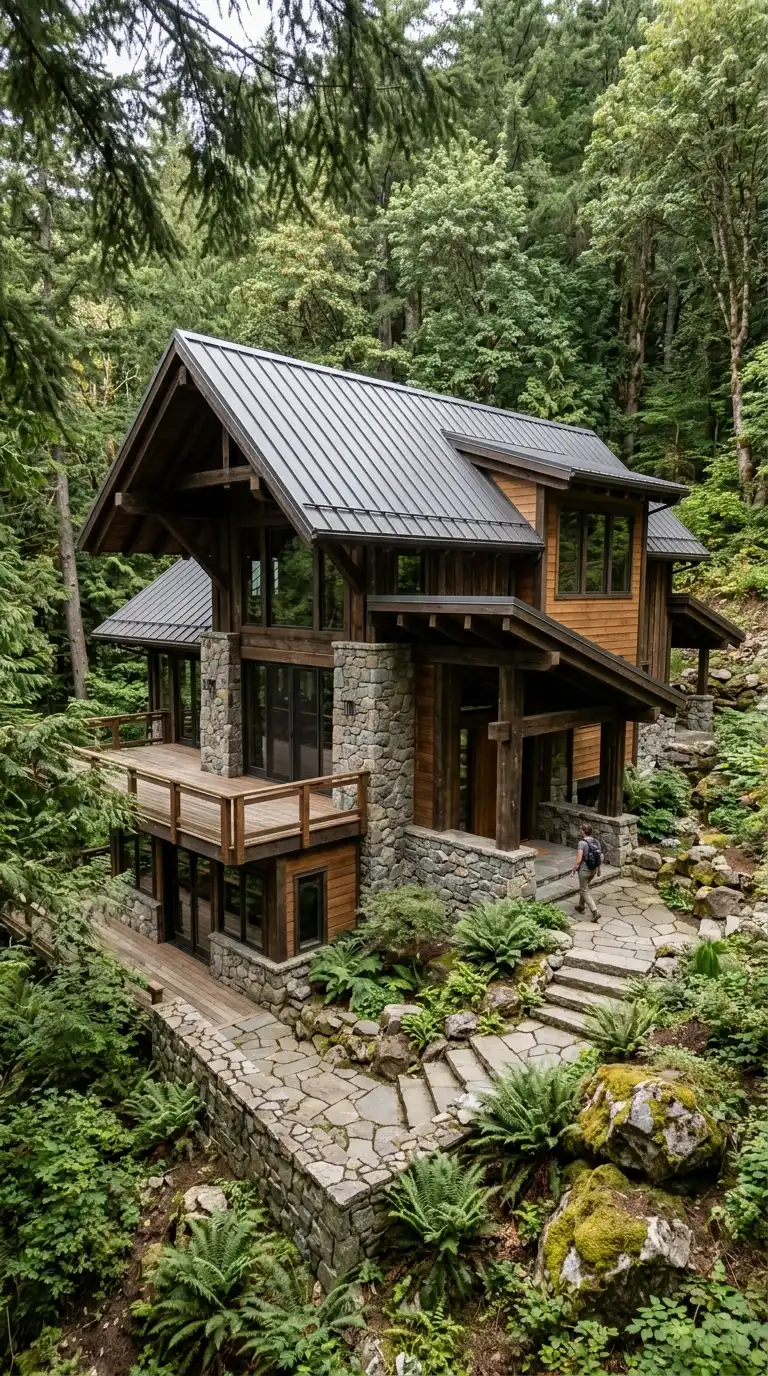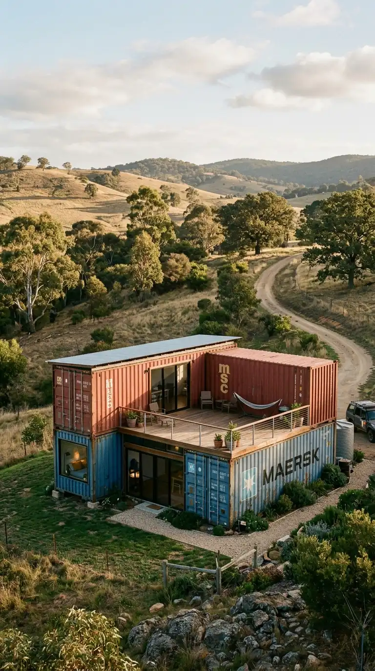 The container’s corrugated metal surface is usually left exposed. Windows and doors are cut into the container walls. Multiple containers can be combined to create larger spaces. The emotional effect is industrial, sustainable, and modular.