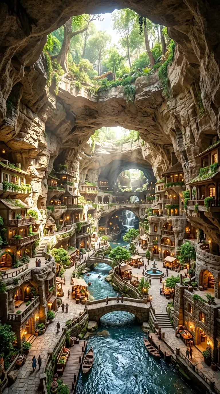 The surface is returned to nature: forest, meadow, or agriculture. The underground city is carved from rock or built in excavated caverns. The emotional effect is protected, mysterious, and radically sustainable.