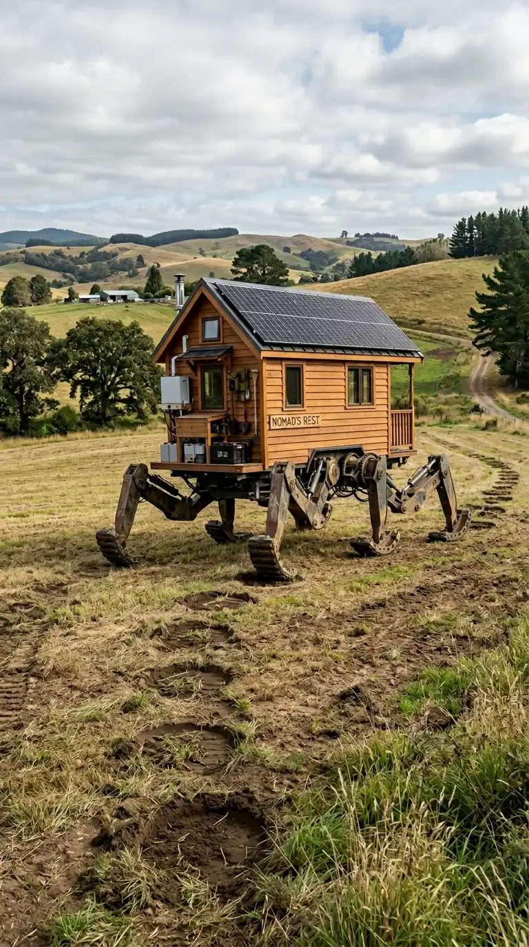 The building is part vehicle, part shelter. It has its own power source, water storage, and waste treatment. The emotional effect is nomadic, autonomous, and radically free.