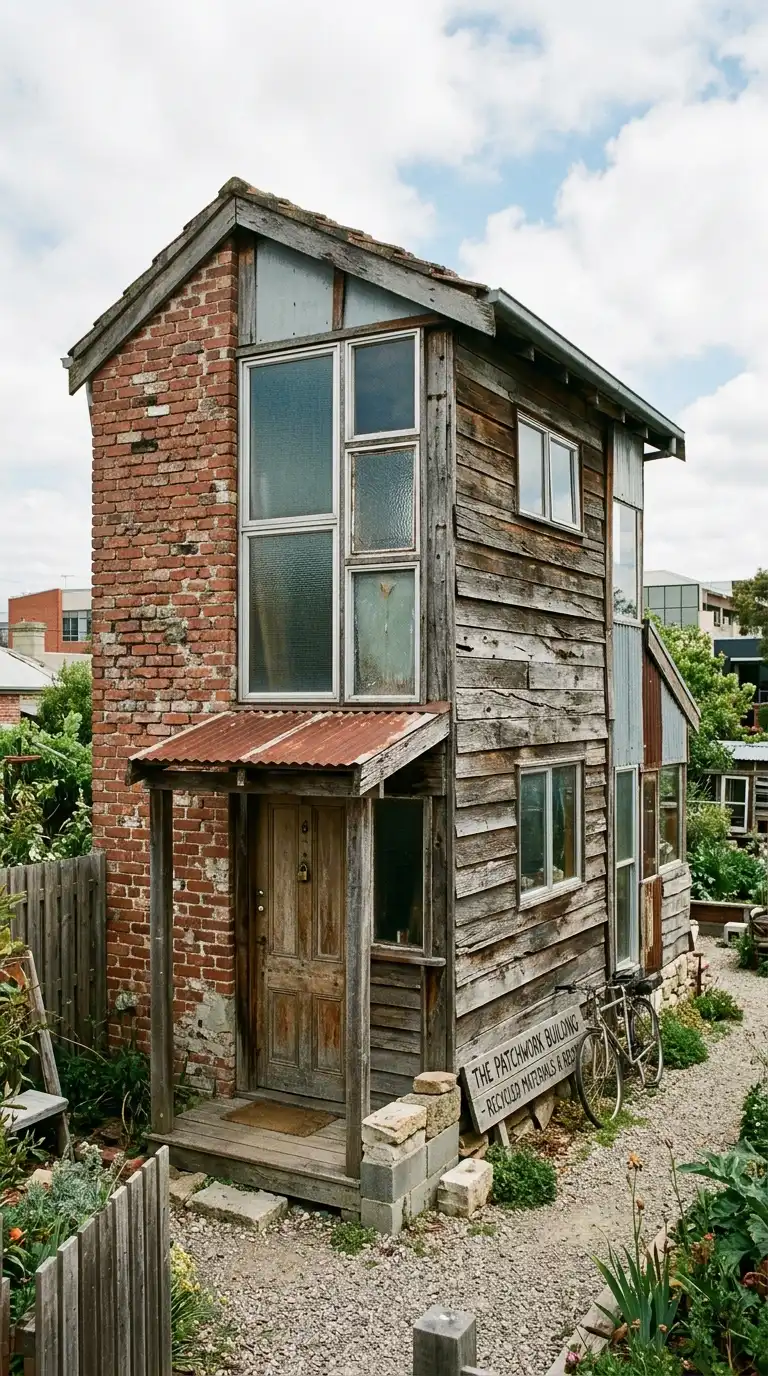 What if a building was made entirely from other buildings? This concept uses salvaged materials: bricks from a demolished factory, timber from a decommissioned barn, windows from an office building. The building is an archive of previous lives.
